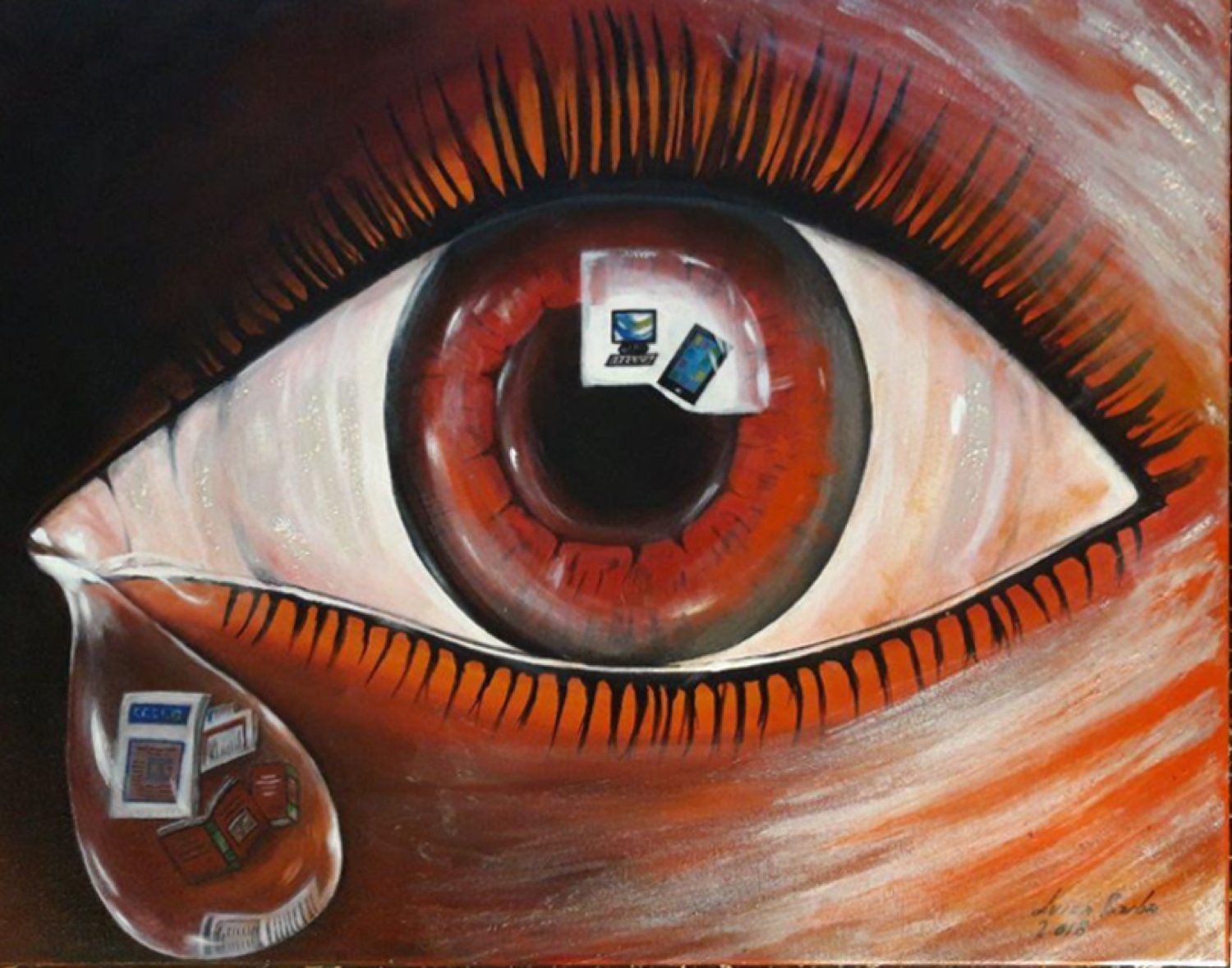 "L'œil qui pleure à cause du narcissisme" Acrylique sur toile.85x 62cm / 33.5"x24.5"